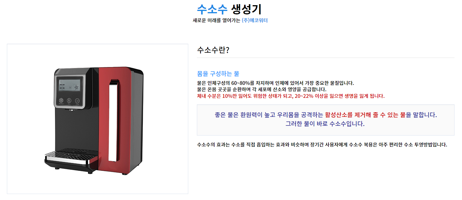 오늘은 수소를 활용한 다양한 연구제품을 개발 제조하는 업체인 에코워터의 하는일과 홈페이지를 소개하려고해요