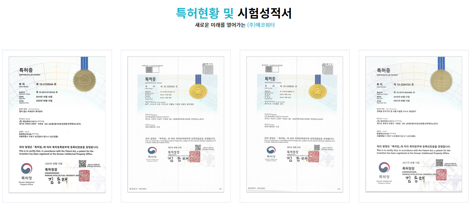이렇게 가정용 부터 산업용까지 물과 관련된 다양한 연구개발을 통해 여러 제품들을 출시 하고 있었네요