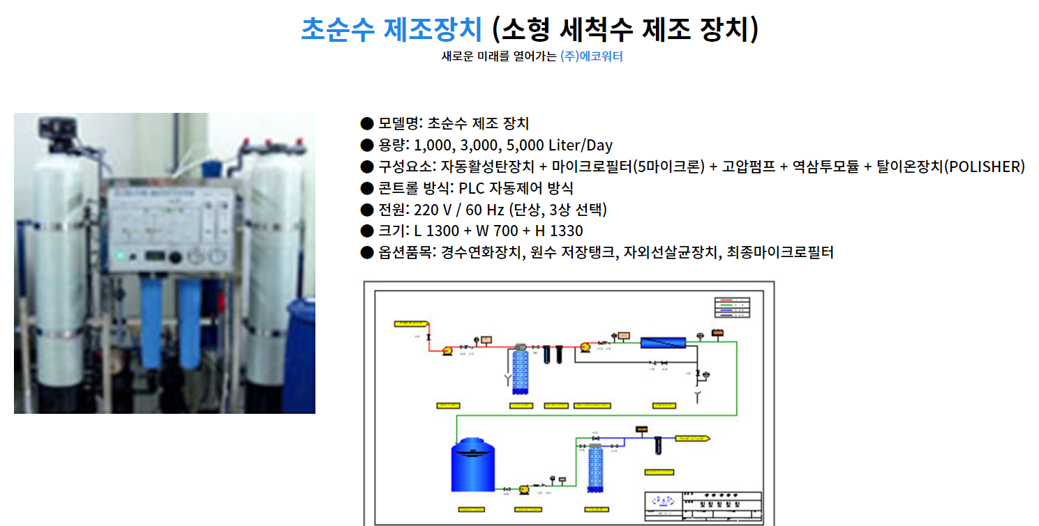 다음으로 (주)에코워터에서 생산하는 제품들을 안내할까 해요